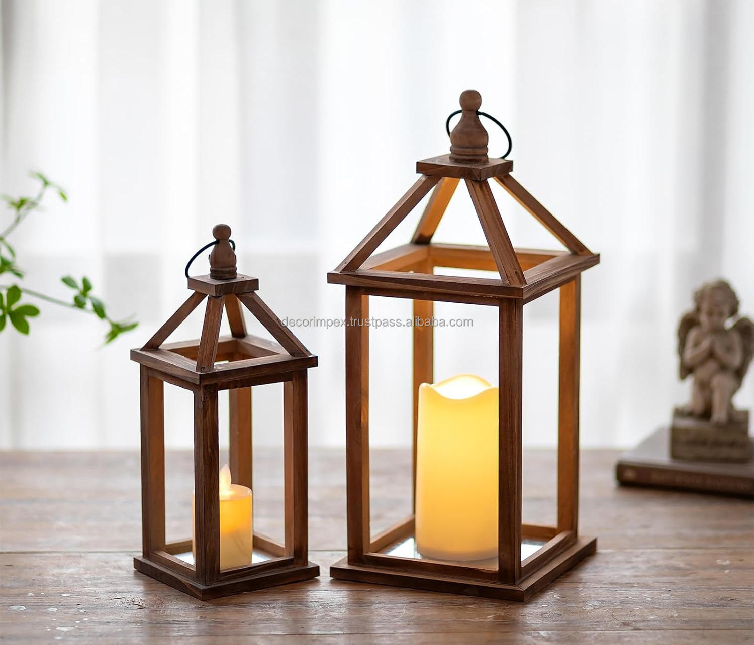 Vintage handmade wooden lantern with rustic finish, perfect for Christmas home décor, weddings, and outdoor celebrations.