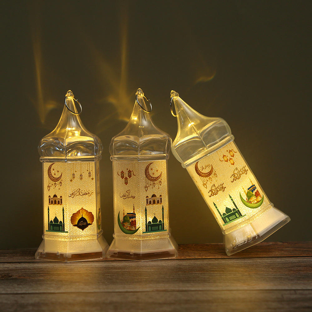 Decorative Eid Mubarak Ramadan LED lantern in Arabian style, perfect for Muslim holidays, New Year, and festive home lighting.