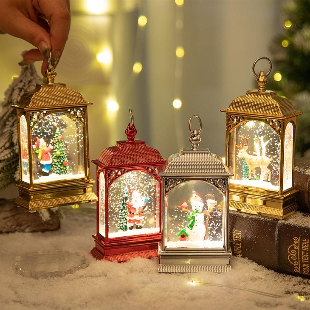 LED lighted Christmas lanterns featuring Santa Claus, Snowman, and Elk designs. Perfect for Christmas tree decorations, gifts, and festive ornaments.