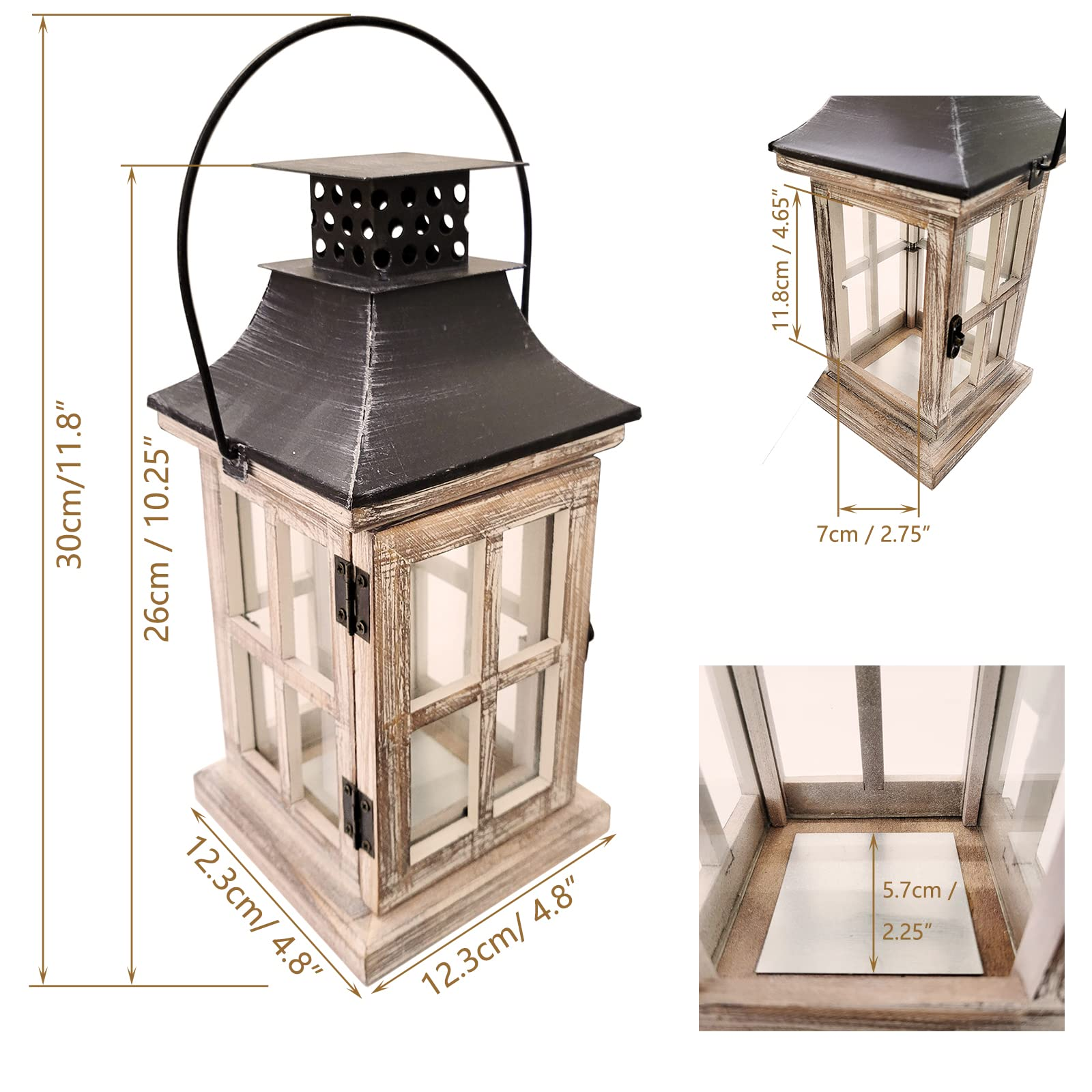Elegant wooden lantern with LED candle, ideal for farmhouse weddings, Christmas decorations, or cozy home ambiance.